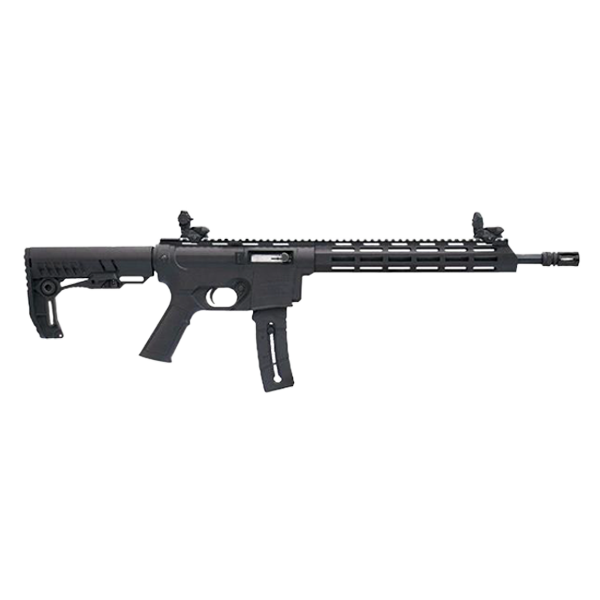 Calibre .22LR, cano 14,5" com quebra-chamas, sistema de funcionamento semiautomático, coronha tática retrátil em polímero com 6 posições, capacidade de 25+1 disparos, Trilho Picatinny e Guarda-mão MLOK (Modular Lock) para instalação de kits ópticos, lunetas e outros acessórios. Aparelho de pontaria composto por alça e massa de mira tipo Peep Sight. Acompanha bolsa tática. Peso: 2 kg.