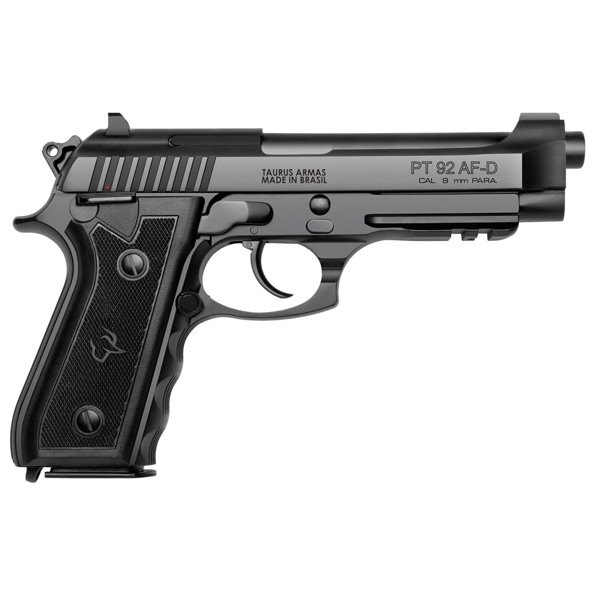 A TAURUS 92 é uma pistola tradicional, com armação em alumínio, adequada para a utilização em diversos segmentos, como esportivo, militar, policial e defesa pessoal.Possui mecanismo de disparo em ação simples e dupla, cão externo, trava manual e desarmador do cão ambidestros.